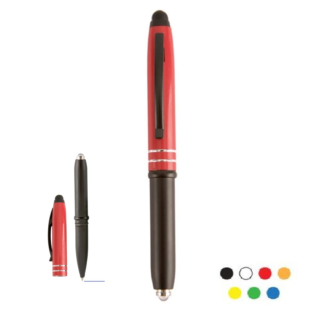 Boligrafo en aluminio y abs con puntero y linterna led y escritura azul.